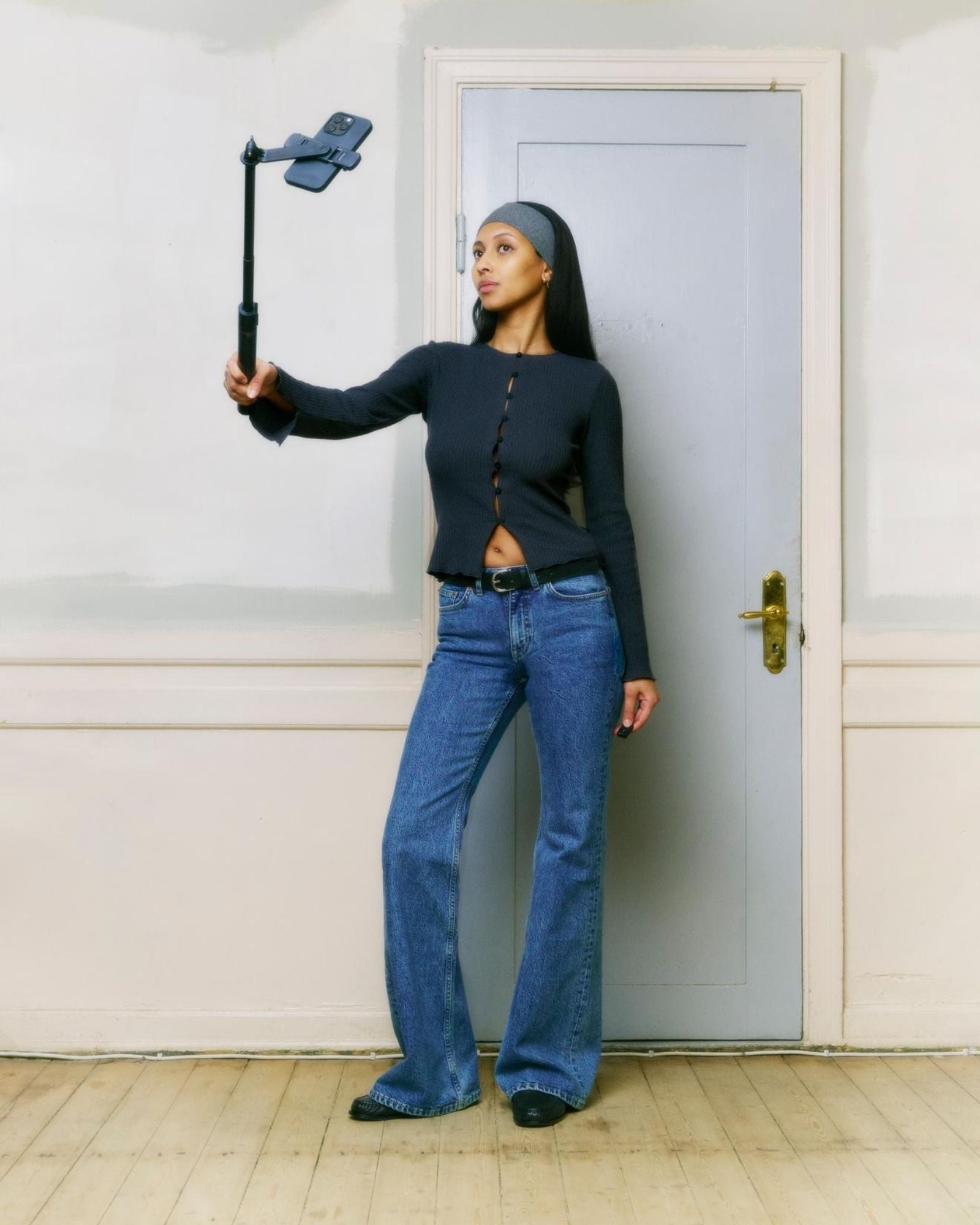 Erica Button Rib Top – Asphalt Grey