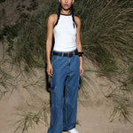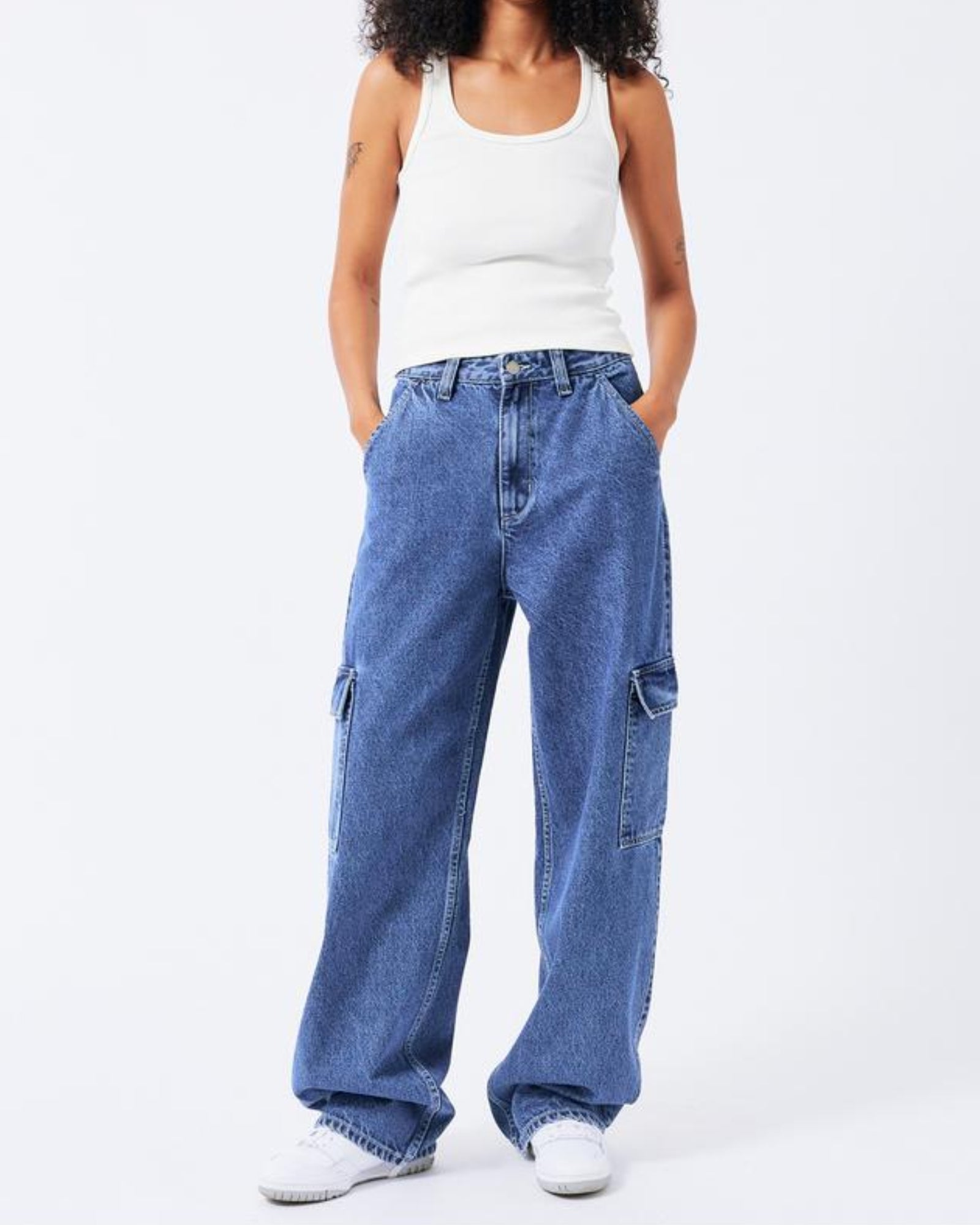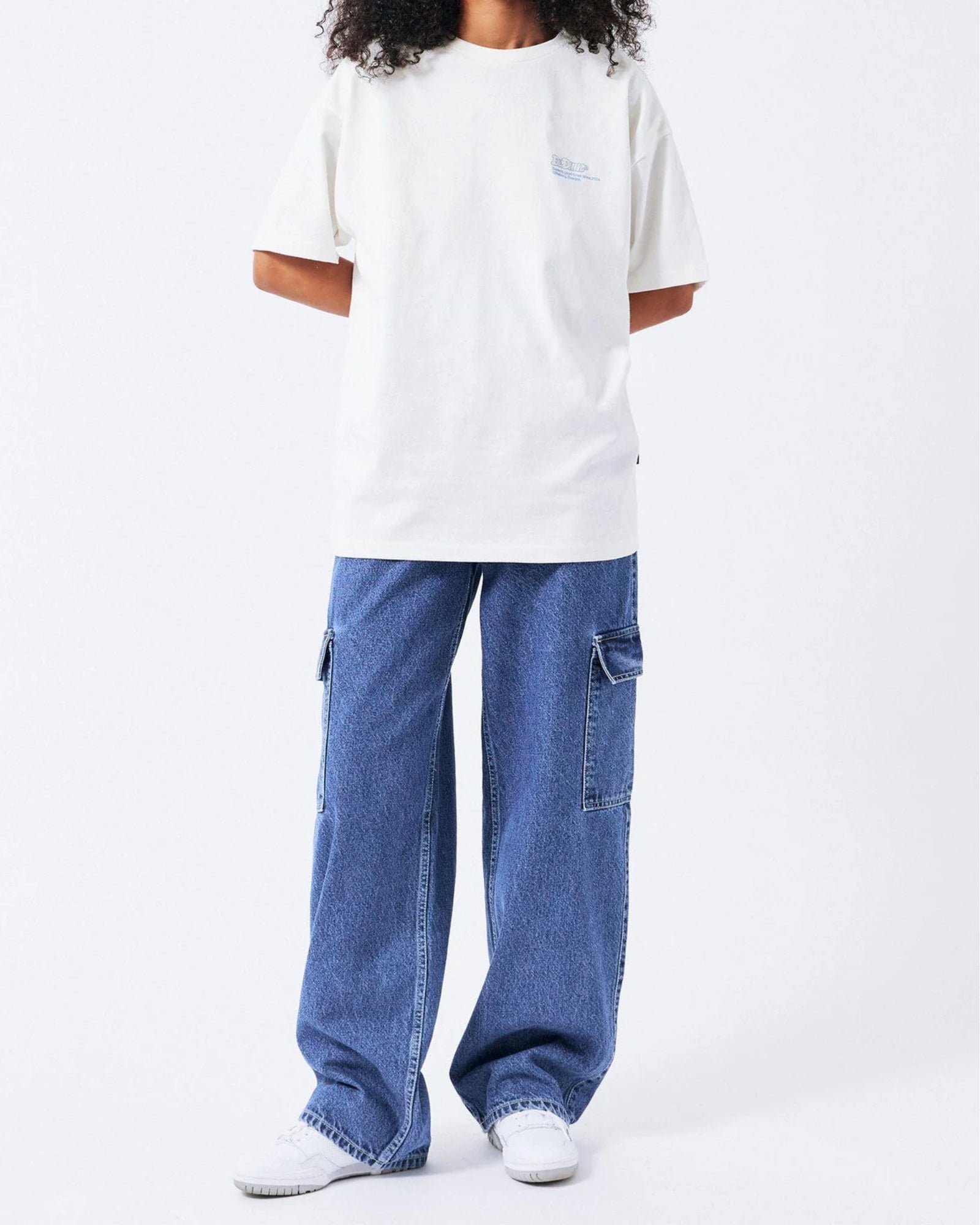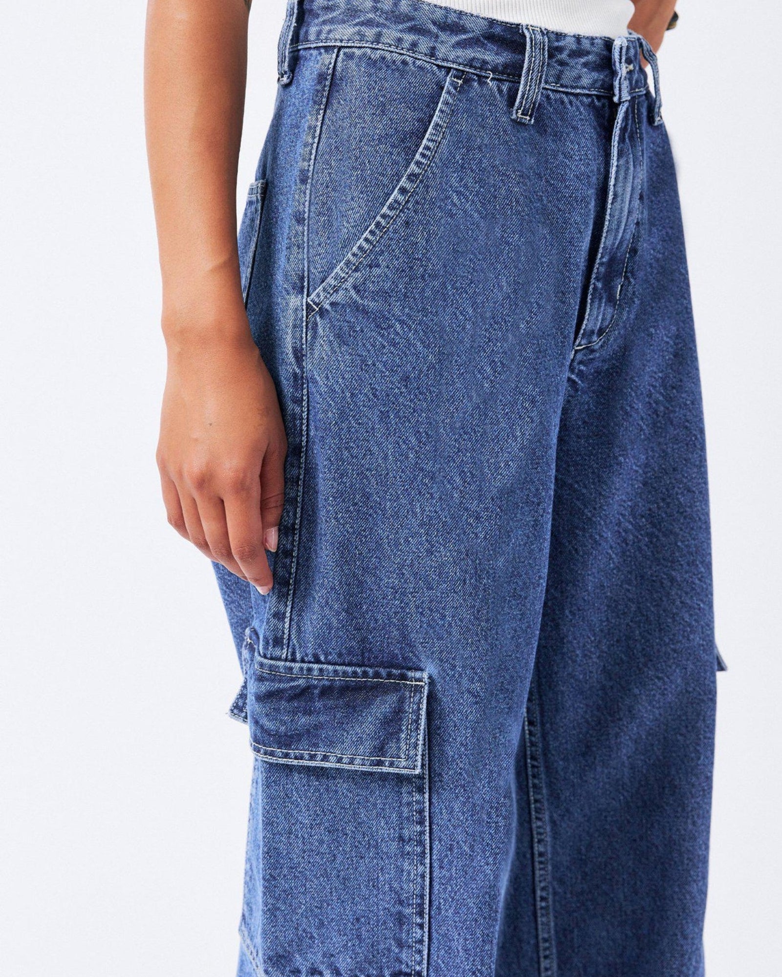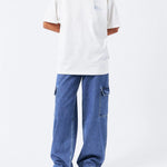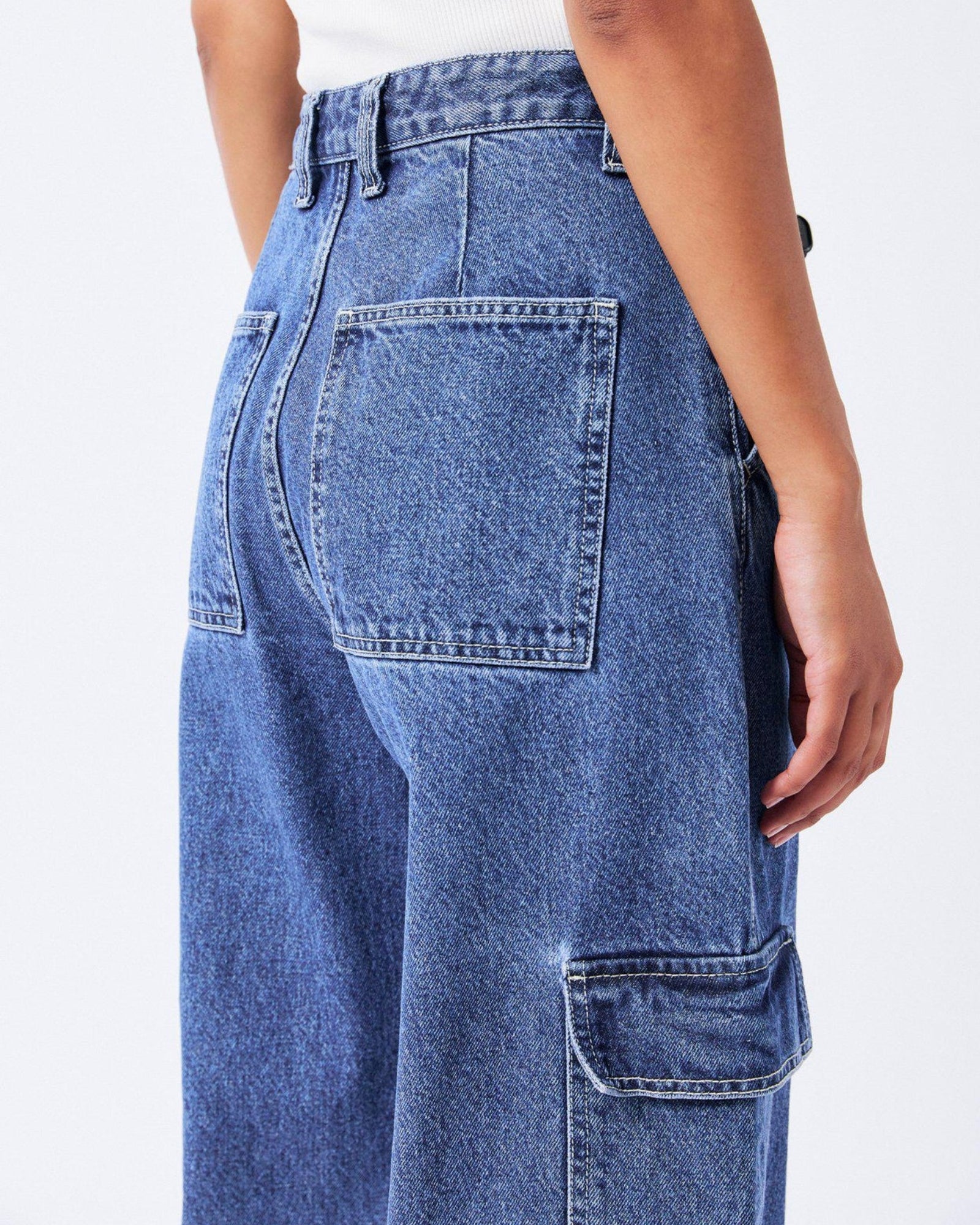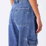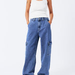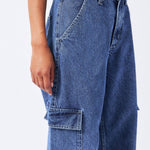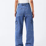 The Donna Cargo in Pebble Mid Stone are a must-have for your wardrobe. Crafted with a relaxed fit and high waist, these jeans feature wide straight legs that are slightly nipped at the hem for a flattering silhouette. Perfect for adding a utilitarian flair, this style has cargo pockets and a zip fly. The rigid rip-stop denim fabric ensures durability and long-lasting wear.