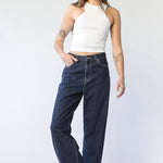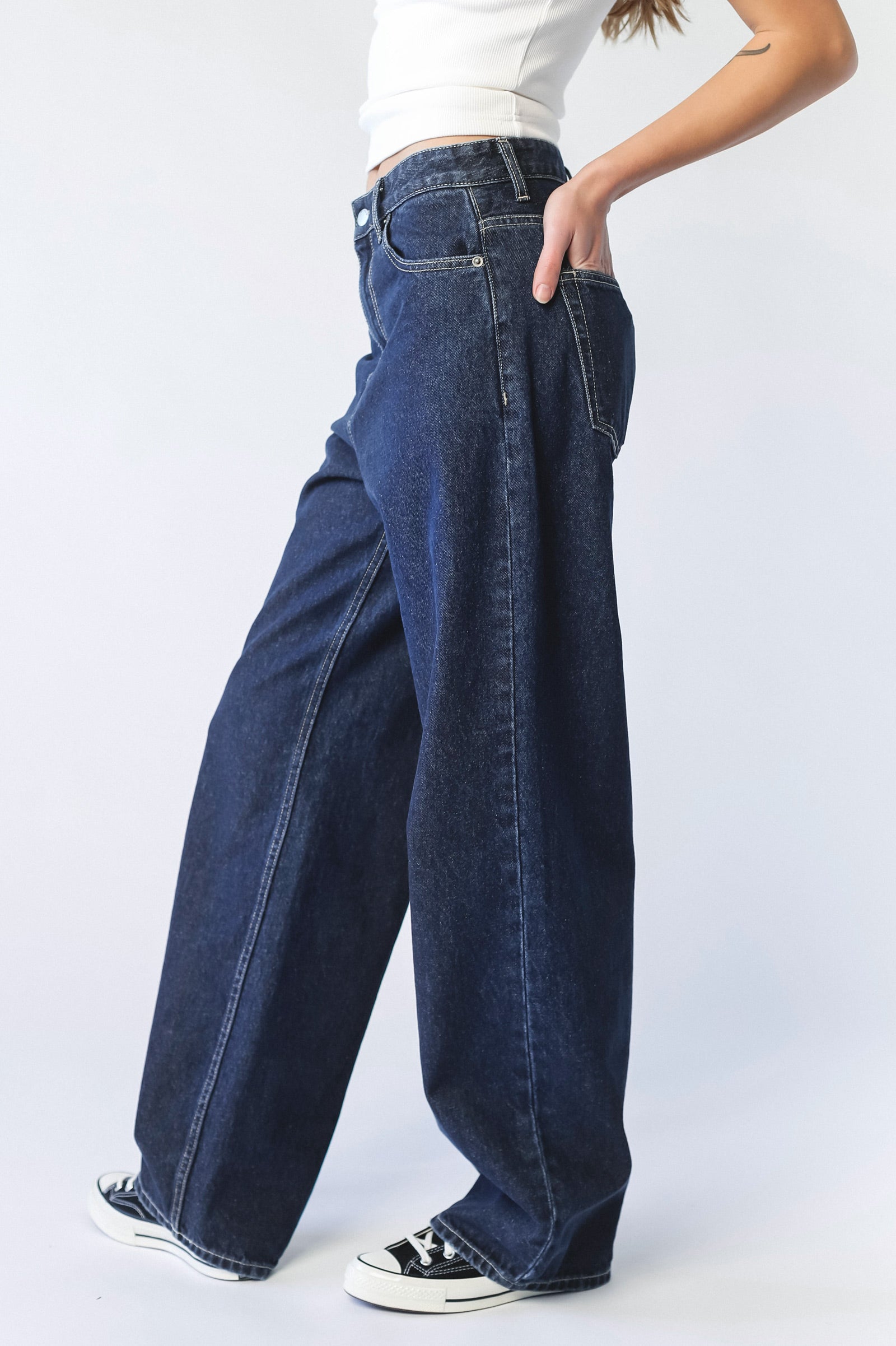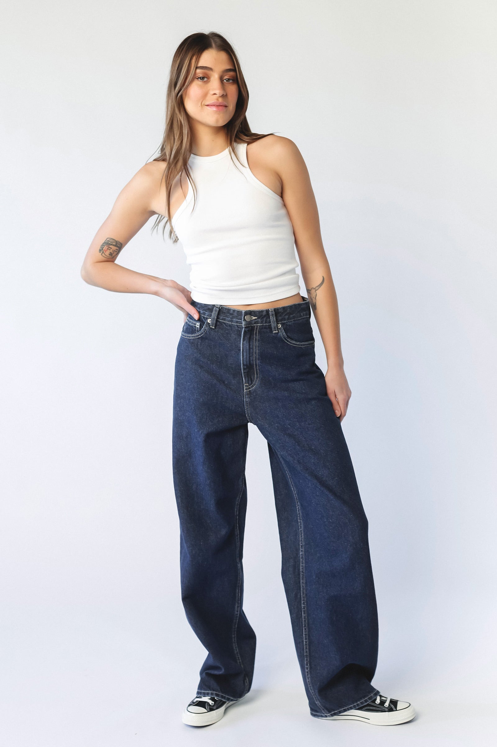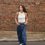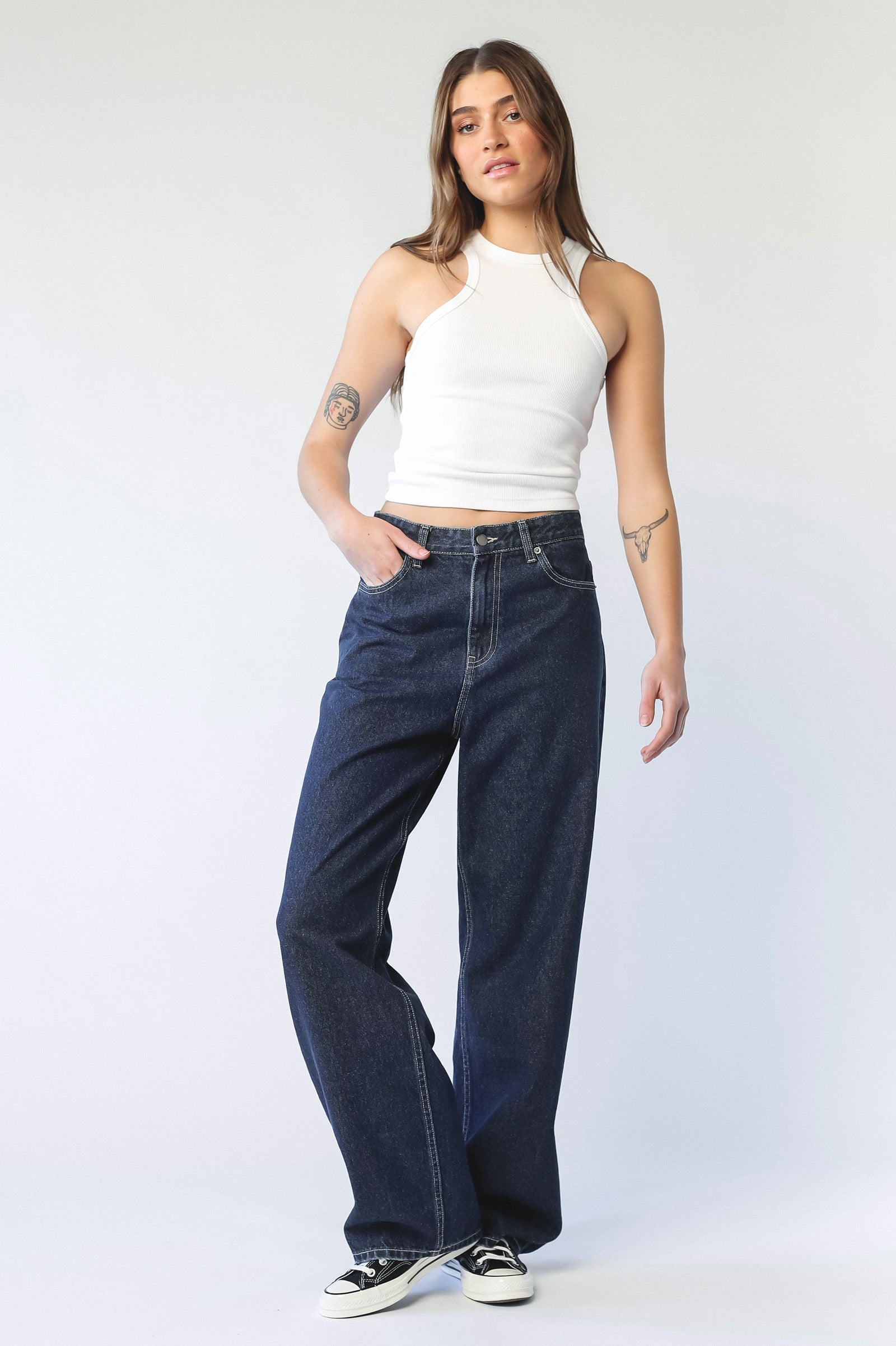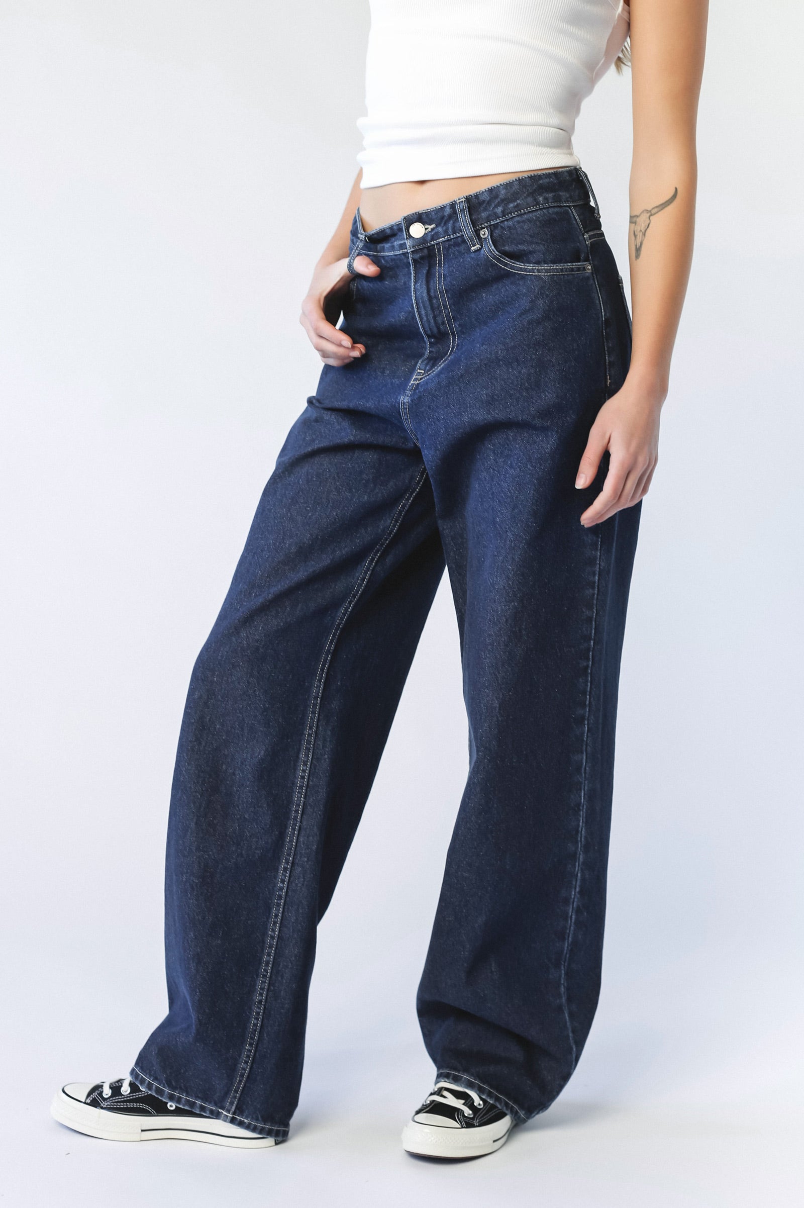 Donna baggy has landed in Pebble Dark Retro. These wide-leg baggy jeans sit perfectly on the waist and fall to the floor with a flattering longer length. Tapering slightly at the hem to stack on your shoes, these perfect relaxed fitting jeans give tribute to 90's denim washes.