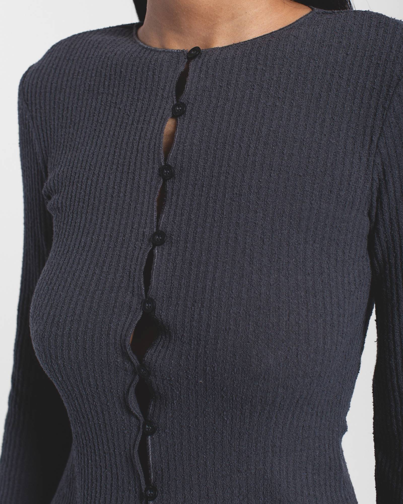 Erica Button Rib Top – Asphalt Grey