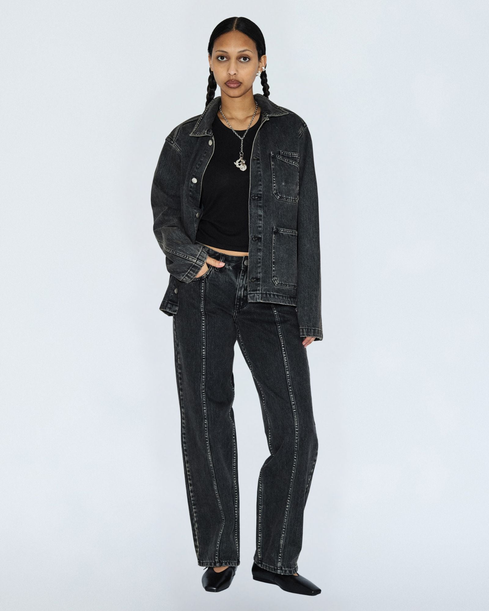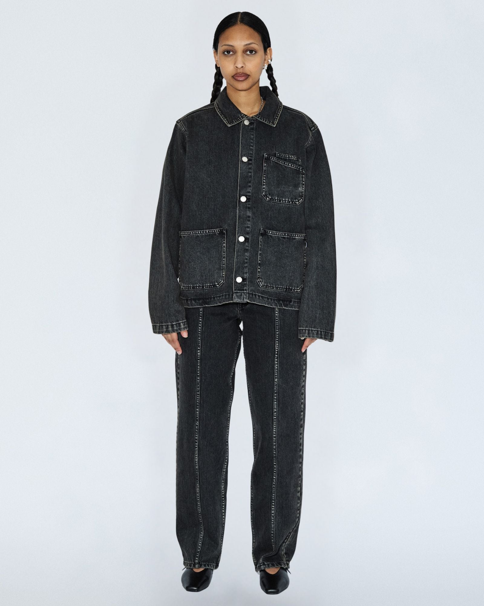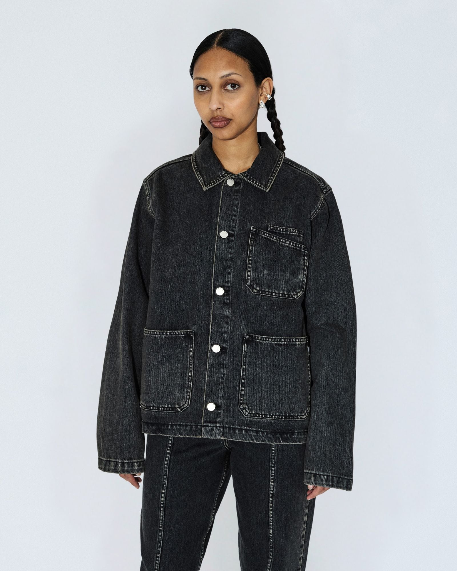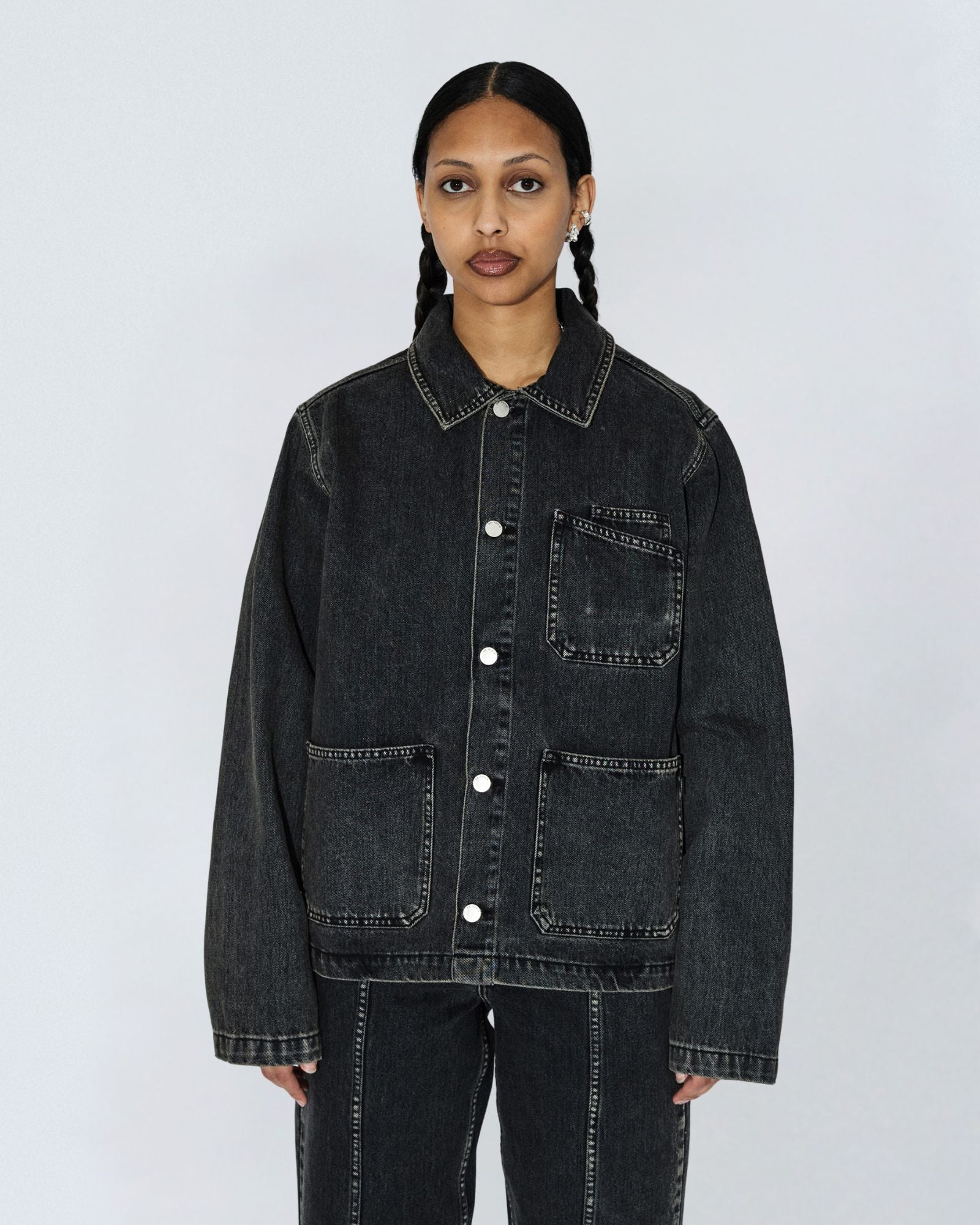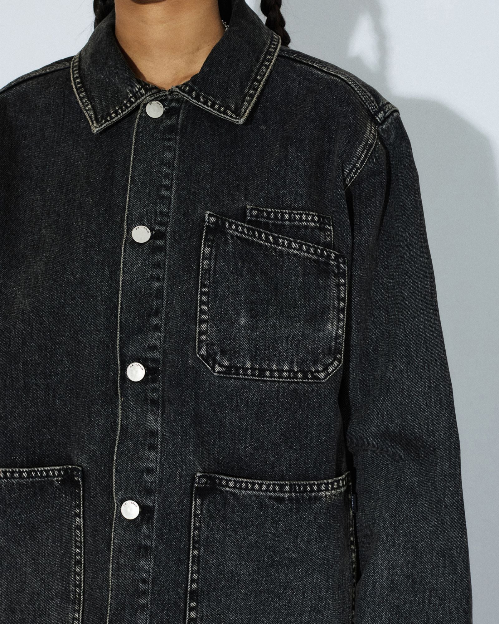 The Evon Worker Jacket is a unisex style with workwear details for a unique and edgy addition to your wardrobe.