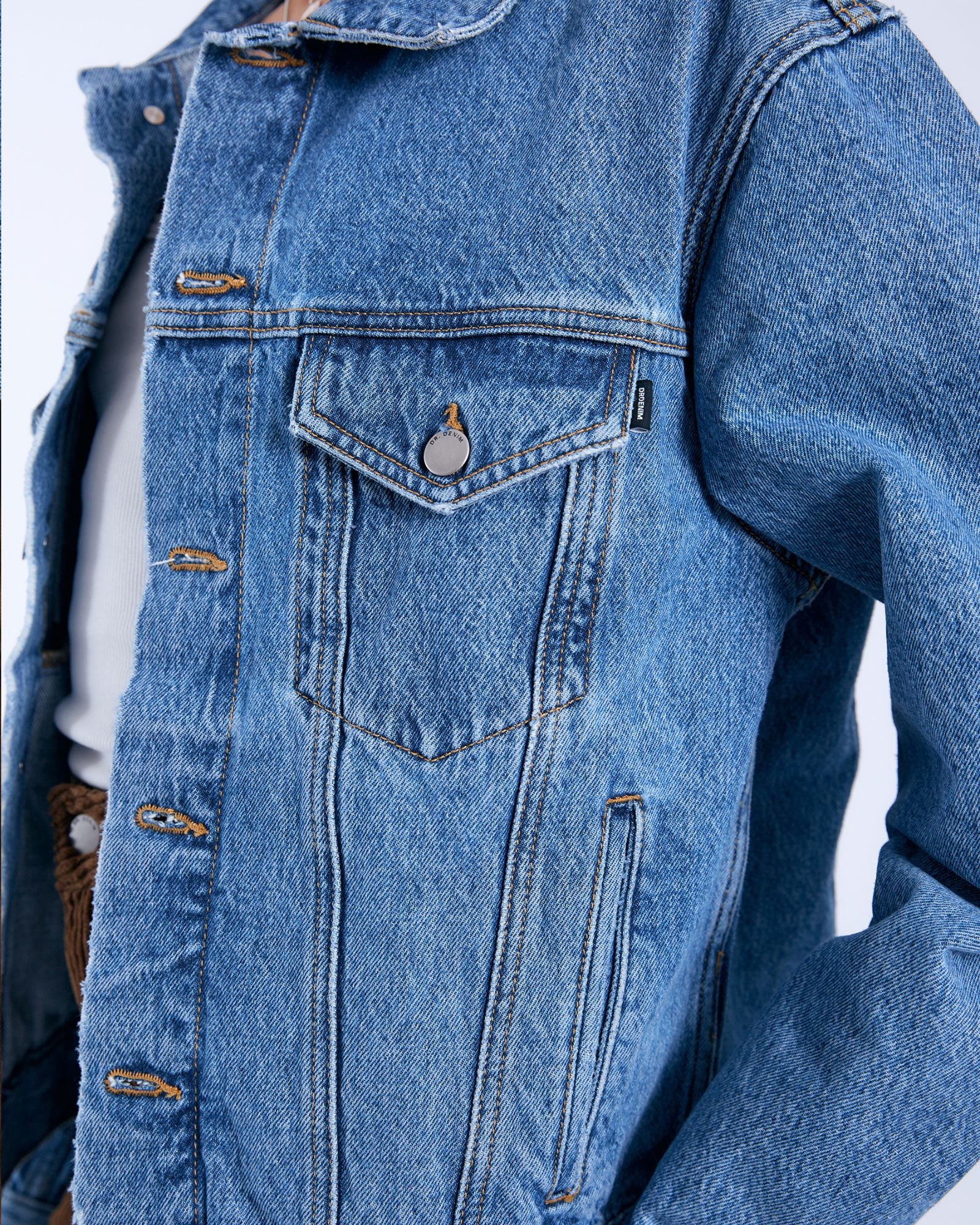 Joey Trucker Jacket is a straight forward unisex denim jacket with classic details such as in-seam pockets, button front and buttoned chest pockets. Featuring a regular, straight fit in 100% cotton denim in the all-time favourite Stream Sky Retro wash, this is the one and only denim jacket you'll ever need.