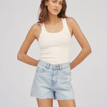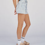 The Nora Shorts in Stream Light Worn bring style and comfort to your summer wardrobe. With a raw hem and their best selling silhouette, they are sure to become your go-to shorts. Perfect for a day of relaxation or a day out, the Nora Shorts offer an effortless sophistication.