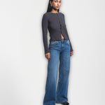 The Rhue Wide Leg Jeans are the latest silhouette in our repertoire. Featuring an ultra-flattering wide leg. This rigid denim style offers a versatile fit that pairs perfectly with sneakers for a casual look or heels for an elevated edge.