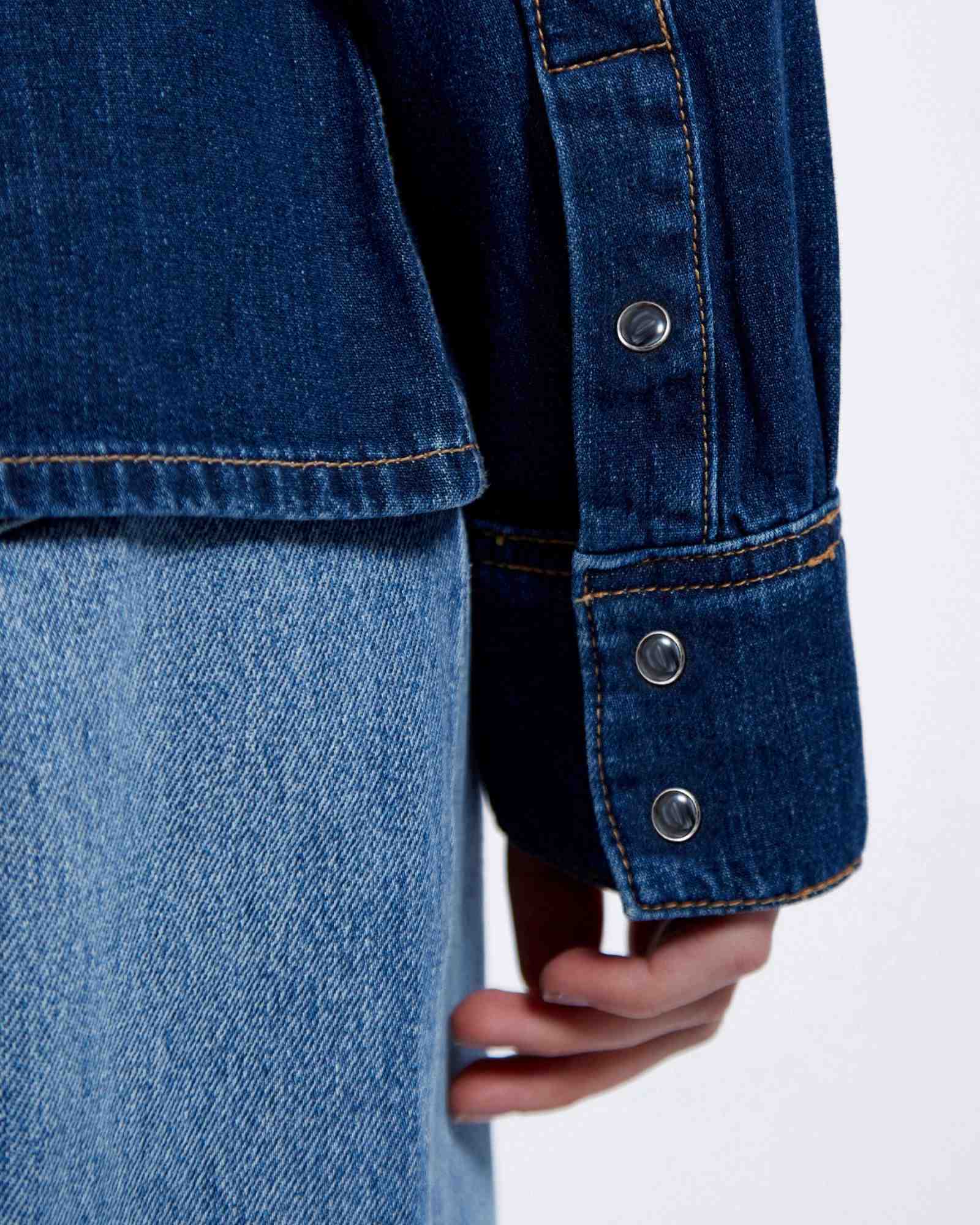 The Sukie Shirt in Dark Retro is a classic denim essential, cut in a regular fit with snap buttons and chest pockets.